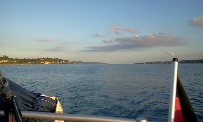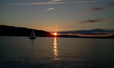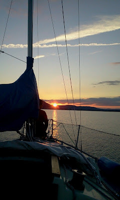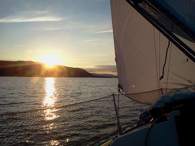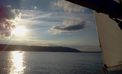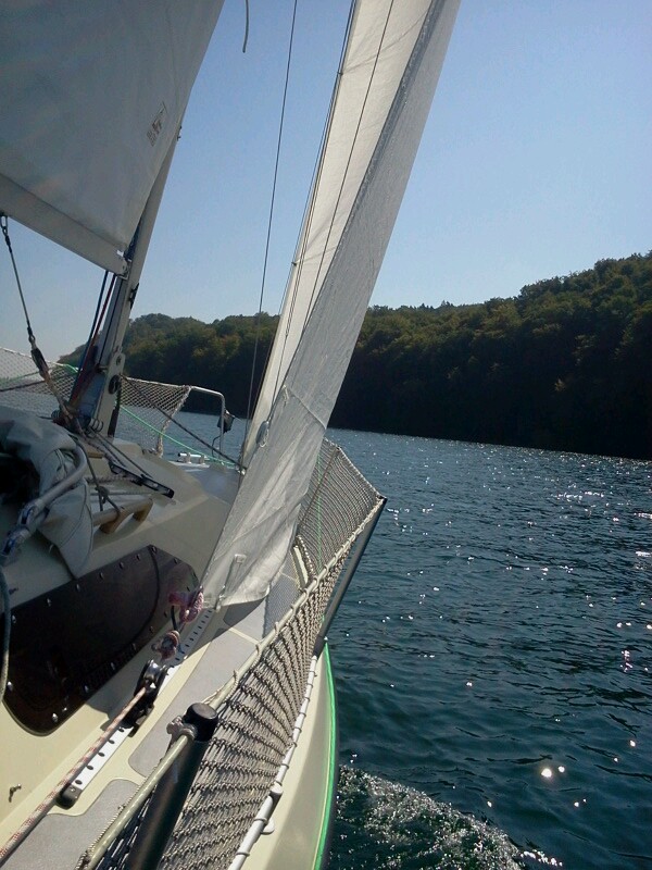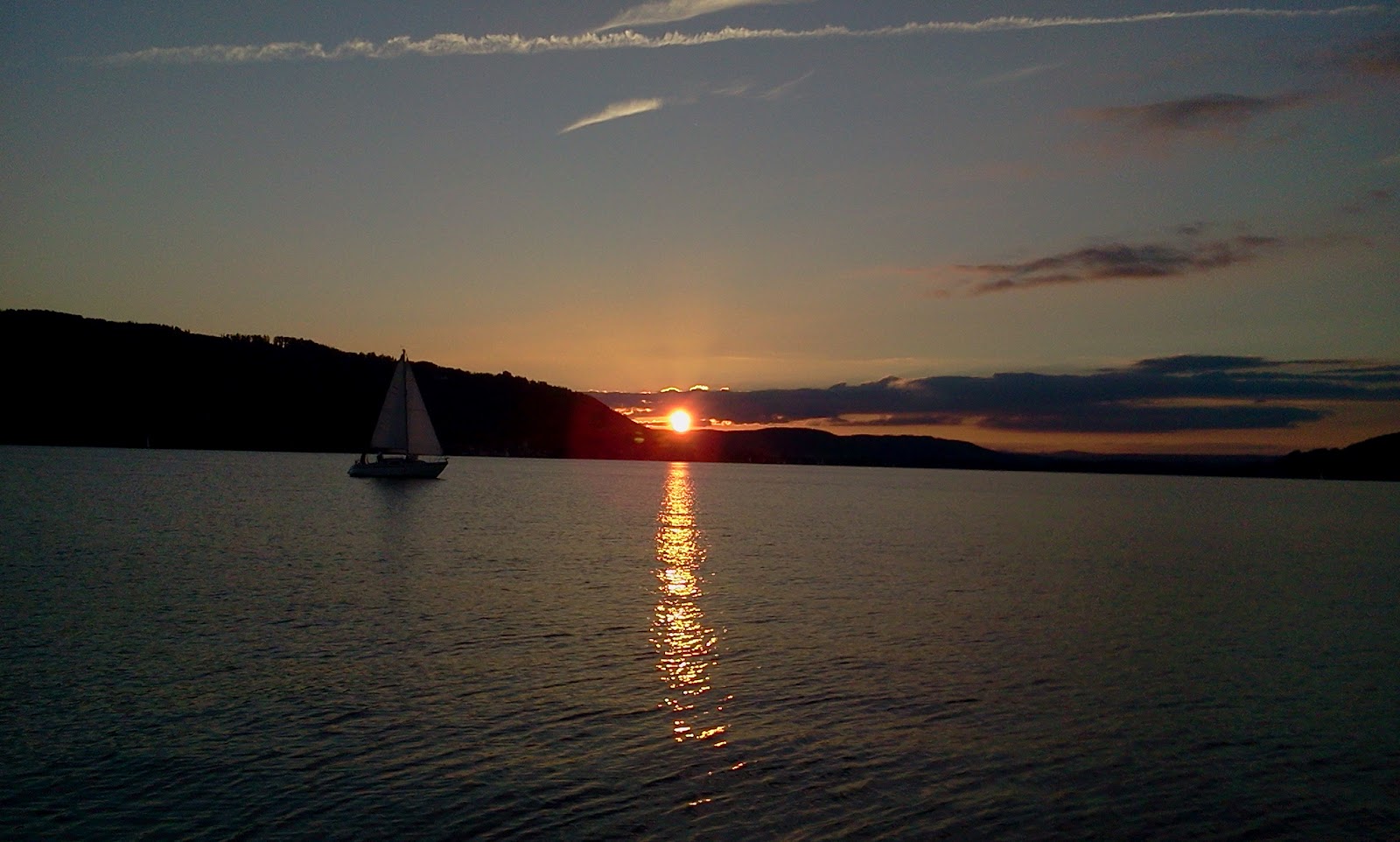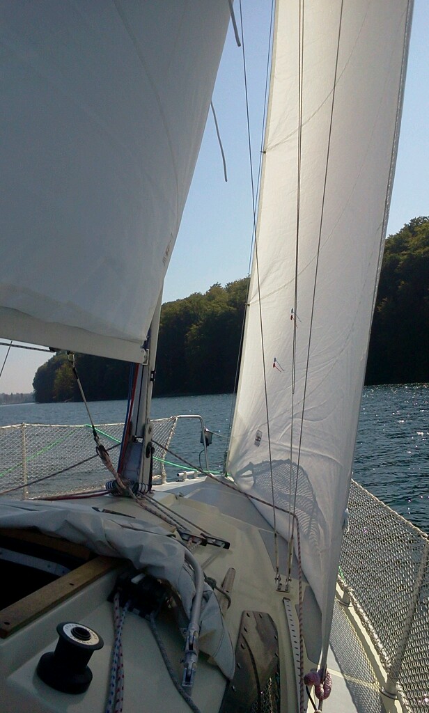 Ab ca. 17:30 Uhr kam aber noch ein schöner NO-Wind (1-2 bf), mit dem wir schön und zügig noch in die Abendsonne segeln konnten. Segeln an sich ist bereitet ja schon viel Freude und Ausgleich zum Alltag, aber in die Abendsonne zu segeln toppt das Ganze nochmal.