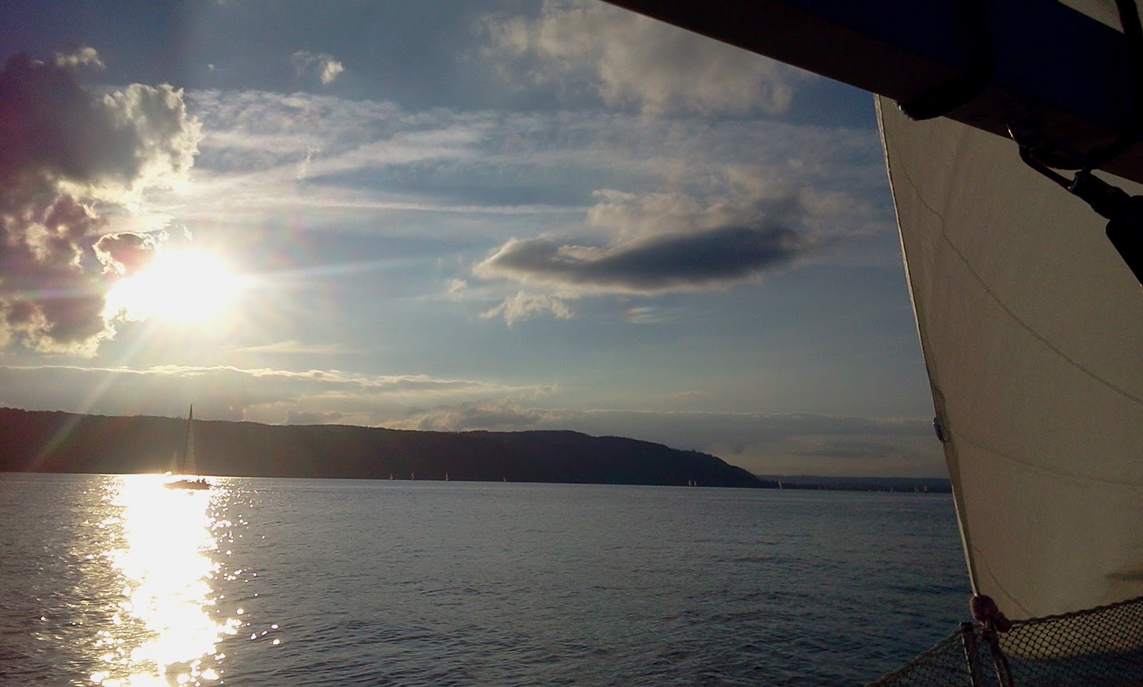 Unser verspätetes Ablegen am Sa. sollte uns, wie sich am nächsten Morgen durch Gespräche mit Seglerkollegen herausstelle, nicht viel versäumen lassen. Tagsüber herrschten wohl nur sehr geringe Winde. Zumindest am Überlinger See. Wie gesagt, alles nur vom Hörensagen.