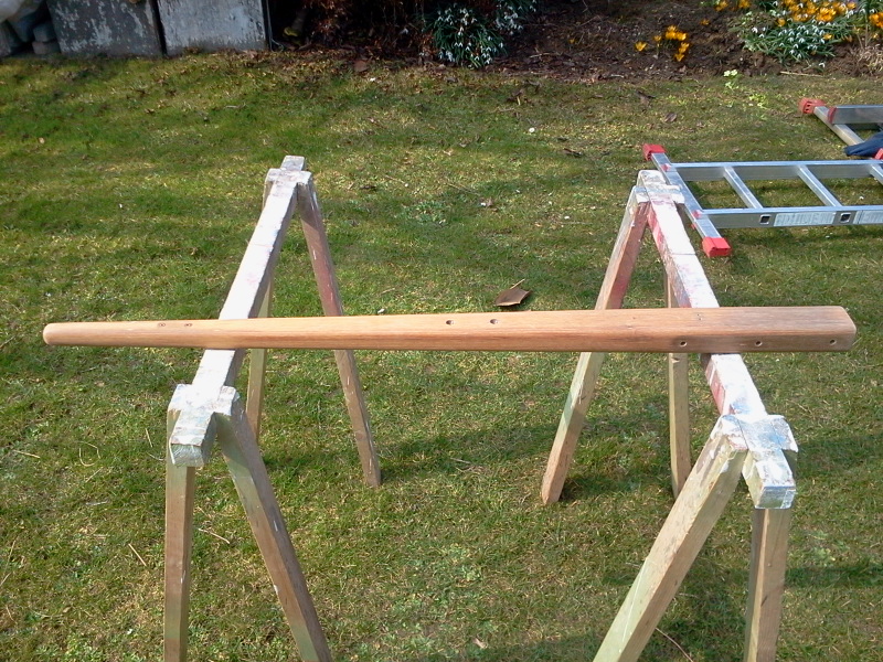 Die Pinne war etwas beleidigt, dass alles auf Hochglanz gebracht wurde, nur sie nicht. Sie war etwas blass geworden und war etwas abgegriffen. Seit diesem Wochenende geht es ihr nun wieder besser und ist überglücklich. Nach einem kräftigen Abschliff erstrahlt sie nun wieder in frischem Glanz.